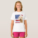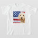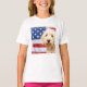 Goldendoodle se sienta orgullosamente frente a la bandera estadounidense en el Día del Recuerdo.