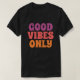 El color es muy bonito al natural, como la foto. El tejido es suave y de buena calidad. Sin defectos en el tintado, ni hilos sueltos o descosidos. Bien la impresión. Los bordes de las letras y el dibujo son nítidos, y el color contrasta muy bien con el de la camiseta.
