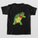 La camiseta en sí, bastante bien. Un poco grande, pero supongo que en dos lavados entallará mejor. Aquí tengo el mismo problema que antes, que el dibujo ocupa toda la camiseta, y por internet me había imaginado que era más pequeño.