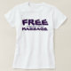Terapeutas de masaje: Este tee, diseñado por Susan M. Epperly de Tiger Lily Studios, puede que no sólo te haga reír, sino también un nuevo cliente o dos! Y este diseño también es PERSONALIZABLE para que puedas agregar tu nombre de negocio, información de contacto, y / o logo en la parte trasera de la camisa! Diseño ©2015 Susan M. Epperly, Tiger Lily Studios, LLC También considera nuestra versión de este diseño sobre la mancha que oculta los tés negros y oscuros: http://www.zazzle.com/funny_customizable_free_oil_application_w_massage_tshirt-235757749012274538 Asegúrate también de ver la línea completa de los estudios Tiger Lily y otros regalos para los profesionales del masaje! (www.TigerLilyStudios.com) http://www.zazzle.com/TigerLilyStudios?rf=238891780775066757