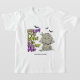 Un lindo bebé, envuelto al estilo de la momia con vendas clásicas de gasa y con brillantes ojos verdes de cal decora esta hilarante camiseta infantil de Halloween junto con una colorida tipografía verde y morada de 'Ayuda. Me han envuelto. También disponible en una paleta de color naranja/púrpura. Utilice la plantilla proporcionada para personalizar con el nombre de su hijo. Busque ID683 e ID685 para ver cómo se coordinan los suministros y accesorios de los fiestas con más diseños de momias.