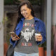 El color es muy bonito al natural, como la foto. El tejido es suave y de buena calidad. Sin defectos en el tintado, ni hilos sueltos o descosidos. Bien la impresión. Los bordes de las letras y el dibujo son nítidos, y el color contrasta muy bien con el de la camiseta.