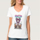 Camiseta con cuello en V de mujer, Negro, XL de adulto