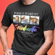 Camiseta moderna de graduación arcoíris para padres orgullosos, con 3 fotos, texto que dice 'padre orgulloso del graduado' el nombre de su escuela o universidad y año de graduación. Los estilos de fuente, tamaños y colores se pueden cambiar haciendo clic en el enlace personalizar más después de personalizar.