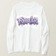 Declare un sentimiento atemporal con nuestro tee "Lavender Infinity". Este diseño presenta la palabra "Forever" (para siempre) representada en un poderoso estilo de graffiti, combinando los suaves y oníricos tonos de lavanda con la audaz y clásica declaración de negro. Es una pieza artística que combina maravillosamente un sentimiento etéreo con un borde urbano, representando un amor o un vínculo que es a la vez delicado y duradero.