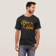 Esta camiseta negra muestra las palabras "Abeja" en un guión fluido de tono cálido, acompañado por un detallado ilustracion de una abeja y un grupo de panecillos. El diseño promueve un mensaje de bondad y aprecio por las abejas y la naturaleza.