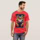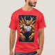 Tee futurista de guerrero de cangrejo con redes tecnológicas, cuernos, emblema brillante y diseño cibernético vectorial. Ideal para los amantes de los juegos, cosplayers, animes y de la moda de ciencia ficción.