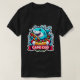 Un tiburón personalizado que lleva puesto una boya salvavidas saborea un perrito caliente con un cúmulo vibrante, rodeado de olas salpicantes y elementos de diseño coloridos. El texto "Cape Cod" aparece de forma prominente en una cinta roja debajo del tiburón.