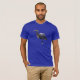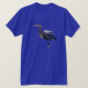 Esta camiseta muestra la Gran Perón Azul, un gran pájaro que camina en la familia de garza Ardeidae, común cerca de las costas de agua abierta y en los humedales. Él es la garza más grande de América del Norte. Entre las características destacables se incluyen plumas de vuelo latas, muslos de color rojo-marrón y una franja de paro rojo-marrón y negro por encima de los costados; el cuello es gris oxidado, con blanco y negro por la parte delantera; la cabeza es más pálida, con una cara casi blanca, y un par de columnas negras que van desde justo encima del ojo hasta la parte posterior de la cabeza. Las plumas en el cuello inferior son largas y de tipo plume. Debido a que esta es la temporada de reproducción, también tiene penachos en la parte inferior y una cuenta de naranjas. Está parado en aguas poco profundas y sus plumas están iluminadas por la luz luminosa del sol.