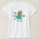 Un chica de cabello marrón con un vestido azul bonito y una corona de princesa con un fondo de flores rosadas en camisetas nuevas de la hermana mayor, botones, bolsos de té, cadenas de llaves, tarjetas, periódicos, almohadas, etiquetas de equipaje, relojes de pared y otros artículos que a la nueva hermana mayor le encantará poseer.