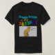 El color es muy bonito al natural, como la foto. El tejido es suave y de buena calidad. Sin defectos en el tintado, ni hilos sueltos o descosidos. Bien la impresión. Los bordes de las letras y el dibujo son nítidos, y el color contrasta muy bien con el de la camiseta.