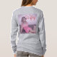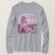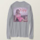 Camiseta gris Wifey Esta es una camiseta sabia. El diseño fue creado con arte generativo. La obra de arte muestra un ilustracion de una mujer bonito con el pelo rubio vestido de rosa. Ella está sentada en un sofá en casa y tiene una sonrisa en su cara. La palabra Wifey está en un guión cursivo rojo encima de su cabeza. El fondo tiene un fondo de pantalla con motivos. La imagen está en la parte delantera y trasera de la camiseta. Puede cambiar la imagen con el botón Personalizar. La camiseta es una camiseta gris de manga larga.