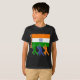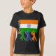 Tres siluetearon a jugadores indios del grillo debajo de la bandera india con el nombre de país la India a lo largo del lado.