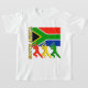 Tres siluetearon a jugadores del grillo delante de la bandera surafricana con el nombre de país Suráfrica en el lado.