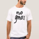 Expresar su opinión sobre los alimentos modificados genéticamente y los riesgos para la salud asociados con estos alimentos. La camiseta de este hombre mostrará cómo te sientes con las palabras "no gmo's" en negrita y negro sobre fondo blanco. Los alimentos genéticamente modificados están prohibidos en la Unión Europea, pero se venden en los Estados Unidos sin etiquetarlos. Muestra tus sentimientos y preocupaciones diciendo "No a los OGM". Algunos estados están empezando a requerir etiquetas, pero la mayoría no lo están en este momento.