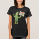 Una verdura con una causa sosteniendo un cartel que dice: Detengan la insensata matanza de zucchini, cosecharán el hueso gracioso de los granjeros, producirán vendedores, vegetarianos y amantes de la carne.