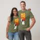 El color es muy bonito al natural, como la foto. El tejido es suave y de buena calidad. Sin defectos en el tintado, ni hilos sueltos o descosidos. Bien la impresión. Los bordes de las letras y el dibujo son nítidos, y el color contrasta muy bien con el de la camiseta.