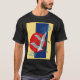 El color es muy bonito al natural, como la foto. El tejido es suave y de buena calidad. Sin defectos en el tintado, ni hilos sueltos o descosidos. Bien la impresión. Los bordes de las letras y el dibujo son nítidos, y el color contrasta muy bien con el de la camiseta.