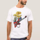 Una guitarra eléctrica de rojo con un tambor detrás. Este diseño parece realmente efectivo en esta camiseta de Mens