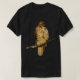 Esta camiseta contiene una hembra Red-Tail Hawk (Buteo jamaicensis). Una de las aves de presa más extendidas y comúnmente observadas en Norteamérica, este cazador encaramado en una rama elevada de algunos abetos verdes, esperando pacientemente que aparezca una comida. Su cabeza es marrón y el seno blanco cremoso tiene manchas marrones.