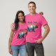El color es muy bonito al natural, como la foto. El tejido es suave y de buena calidad. Sin defectos en el tintado, ni hilos sueltos o descosidos. Bien la impresión. Los bordes de las letras y el dibujo son nítidos, y el color contrasta muy bien con el de la camiseta.