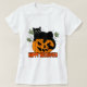 It's a black cat resting on a scary pumpkin design with "Happy Halloween" messages. An ideal Halloween gift for cat owners and women who love cats.