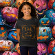 Un gótico mágico borde con calaveras y "truco o tratamiento" en naranja de calabaza. Para tu ropa o disfraces de Halloween o tu fiesta de Halloween.