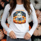 Esta espeluznante y personalizable camiseta de manga larga es perfecta para los amantes de los libros que quieren añadir un toque de diversión de Halloween a su armario. Con un encantador fantasma que usa gafas y sostiene un libro en un parche de calabaza, este diseño seguramente se volverá la cabeza. Personalizar la camiseta cambiando la palabra "BOOOKS" a tu proverbio favorito. Ya sea que seas profesor, estudiante o simplemente lombriz, esta camisa es la manera perfecta de expresar tu amor por la lectura.