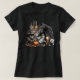 Camiseta Halloween negro Caballo negro Gato espeluznante
