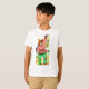 Un alegre y gracioso espantapájaros viene en frente de esta adorable camisa de Halloween. El saludo "Halloween feliz" está en la parte trasera. Obra de arte de Jo Ann Hayden