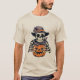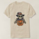 In this chilling design, a skull in a hat and cape shows a macabre smile while hugging an equally terrifying pumpkin before it with its bony hands. This representation captures the essence of Halloween with its combination of spooky elements and the gesture of complicity between the skull and the pumpkin, creating an intriguing image that evokes the emotion of the season in a haunting and captivating way.