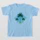 HAMbyWhiteGlove alias HAMbWG hawaiin themed boy's light blue camiseta, con palmeras en un colorido fondo acuático con verdes y azules, y la palabra hawaiin "Aloha".