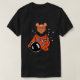 El color es muy bonito al natural, como la foto. El tejido es suave y de buena calidad. Sin defectos en el tintado, ni hilos sueltos o descosidos. Bien la impresión. Los bordes de las letras y el dibujo son nítidos, y el color contrasta muy bien con el de la camiseta.