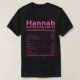 Camiseta Hannah Nombre Nutrición Hechos Personalizados Muje