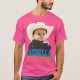 El color es muy bonito al natural, como la foto. El tejido es suave y de buena calidad. Sin defectos en el tintado, ni hilos sueltos o descosidos. Bien la impresión. Los bordes de las letras y el dibujo son nítidos, y el color contrasta muy bien con el de la camiseta.