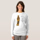 Raglan de manga blanca y negra de las damas con camiseta con una imagen de una estatua de la Diosa Hatio y una descripción de ella. Hathor es una antigua diosa egipcia que personifica los principios del amor, la belleza, la música, la maternidad y la alegría. Ver toda la colección de Diosas Aparientes en los TOUCHES ESPECIALES | Sección de favoritos de partido.