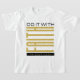 Esta camiseta del chica muestra un tipo de letra de impresión fatimi/lastica/telegraf con letras doradas y negras con un estilo de tipografía vertical/horizontal que muestra la frase "Hazlo con la fe en tu Señor" en este tema de cita bíblica. Esta camiseta presenta un ajuste relajado para la forma hembra hecha de 100% algodón esta camisa es duradera y suave que hacen una gran combinación.