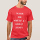 La camiseta clásica básica impresa con un Make America Great Again play en palabras Make Me Myself and I Great Again con texto en blanco sobre el estilo de color rojo MAGA del fondo por la impresión de TheFabricSeal en la tienda a petición en Zazzle.com #ZazzleMade https://www.zazzle.com/store/thefabricseal TheFabricSeal ©️ Original. Este es un juego de palabras de la famosa cita del presidente Donald Trump: "Haz que Estados Unidos vuelva a ser grande". Estos icónicos productos en rojo y blanco de la MAGA deben tener productos que no sólo hagan una declaración de moda, sino que también muestren tu apoyo al presidente Trump y su visión de hacer que Estados Unidos vuelva a ser grande. El rojo atrae la mayor atención y está vinculado a fuertes emociones como la ira, la pasión y el amor. Se usa universalmente para significar coraje, poder, fuerza y peligro. Cómoda, casual y suelta, nuestra camiseta de color oscuro y pesado se convertirá rápidamente en una de tus favoritas. Hecho de 100% algodón, es unisexo y se viste bien con cualquiera. Haga clic en el botón "Personalizar" para convertirlo en su propio producto personalizado o monogramado. Puede cambiar los colores del texto y el estilo de letra utilizando la opción personalizar it. Diseñar los suyos. Hazlo Tu Propio. Un gran regalo para la familia, los amigos y para ti mismo, por supuesto.