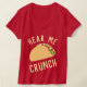 Un ilustracion de comida de un taco con las palabras Hear Me Crunch, para los hambrientos amantes del taco.