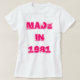 Camiseta blanca con letras rosas con el lema: "Hecha en 1981".
