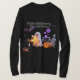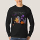 Whimsical Halloween shirt with friendly ghosts, pumpkins, and the phrase "Hello Halloween, My Old Friend." A festive, spooky design.