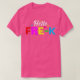 El color es muy bonito al natural, como la foto. El tejido es suave y de buena calidad. Sin defectos en el tintado, ni hilos sueltos o descosidos. Bien la impresión. Los bordes de las letras y el dibujo son nítidos, y el color contrasta muy bien con el de la camiseta.