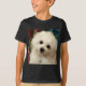 Hermes, un pequeño perrito maltés dulce que presenta para un retrato en su primer cumpleaños.