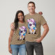 El color es muy bonito al natural, como la foto. El tejido es suave y de buena calidad. Sin defectos en el tintado, ni hilos sueltos o descosidos. Bien la impresión. Los bordes de las letras y el dibujo son nítidos, y el color contrasta muy bien con el de la camiseta.