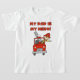 Los niños que son orgullosos de su papá del bombero amarán el llevar de esta figura linda y colorida camiseta del palillo del bombero que lea "mi papá son mi héroe!".