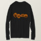 Suave, casual y suelta, esta manga larga es la camiseta de Halloween que estás buscando. El ilustracion tiene una bruja voladora en su escoba con sus compañeros Jack O Lanterns y gato negro. Al revés hay un diseño que hace corresponder. Se puede personalizar fácilmente el texto 'Hocus Pocus' o dejarlo como está. Perfecto para la fiesta/función familiar de Halloween y las salidas. Si te gusta mi arte, visita mi tienda 'moda_design_boutique'. Enlace: https://www.zazzle.com/store/chic_design_boutique