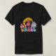 El color es muy bonito al natural, como la foto. El tejido es suave y de buena calidad. Sin defectos en el tintado, ni hilos sueltos o descosidos. Bien la impresión. Los bordes de las letras y el dibujo son nítidos, y el color contrasta muy bien con el de la camiseta.