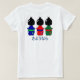Tres muñecas japonesas en la opinión delantera hola en japonés y en la parte posterior, él dice adiós