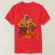 El color es muy bonito al natural, como la foto. El tejido es suave y de buena calidad. Sin defectos en el tintado, ni hilos sueltos o descosidos. Bien la impresión. Los bordes de las letras y el dibujo son nítidos, y el color contrasta muy bien con el de la camiseta.