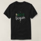 En la parte delantera se lee "100% Vegan". La parte trasera de la camisa dice "Hola soy Vegan" seguido de las respuestas a muchas preguntas que los veganos se preguntan.